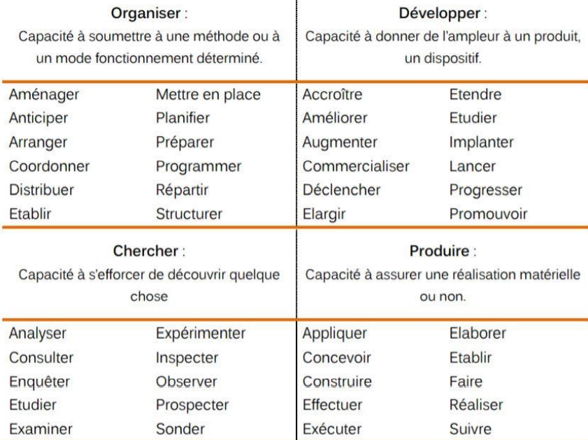 - Utiliser des verbes d'actions qui reflètent vos activités professionnelles